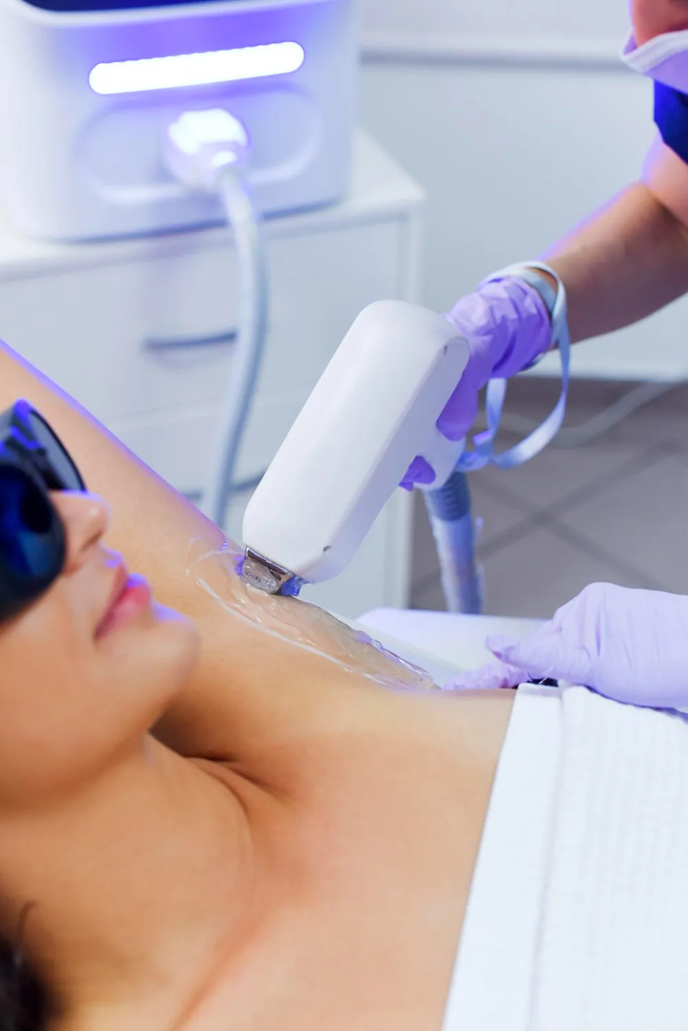 Professional laser treatment using advanced technology with cooling systems for comfort and safety during the procedure